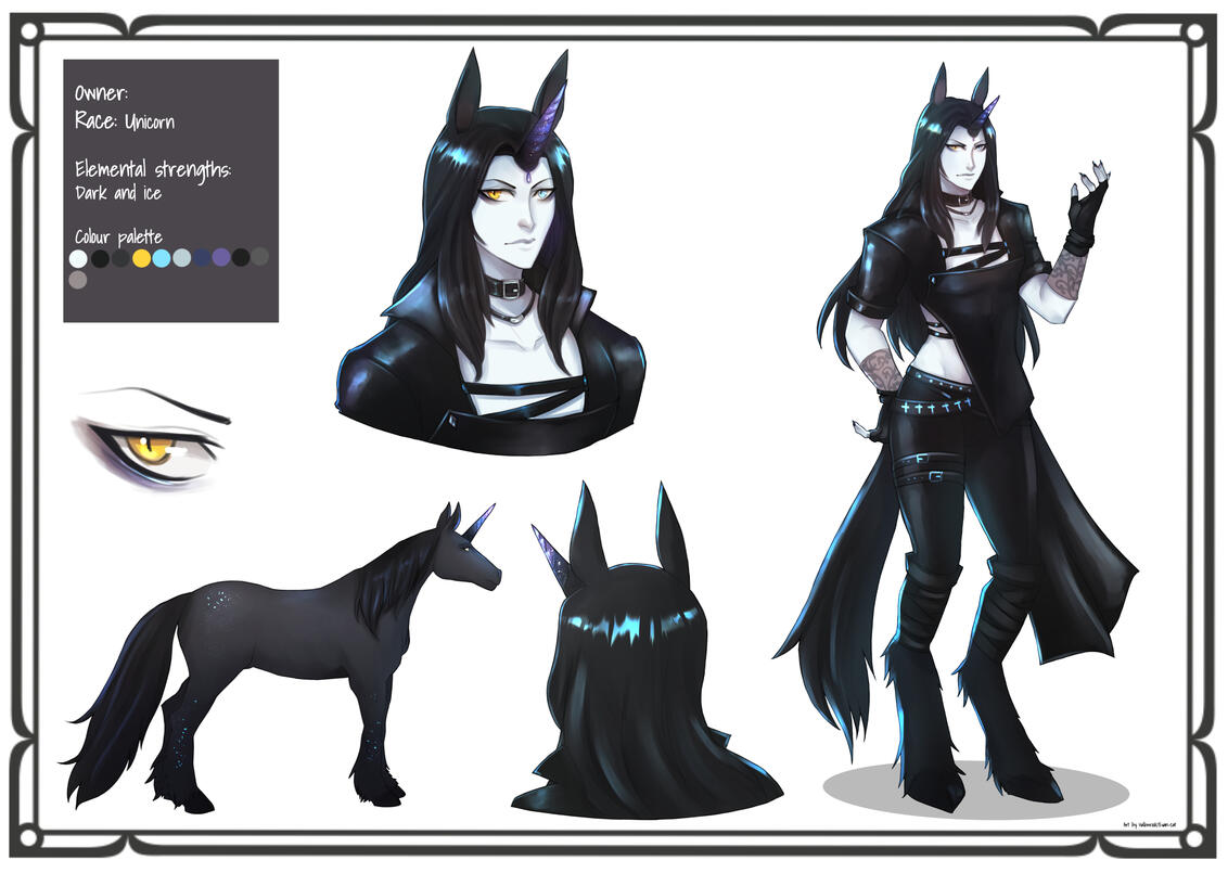✧ Void unicorn - Dark-coloured fur. Void and demonic motifs. Dark element.